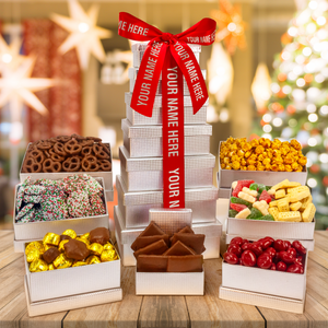 Our choicest delicacies packaged in a beautiful silver gift box. Filled with chocolates, nuts, and the best flavors of New England, you’ll want your family or business name on these.